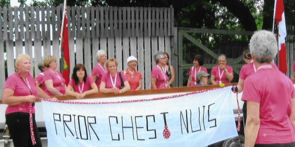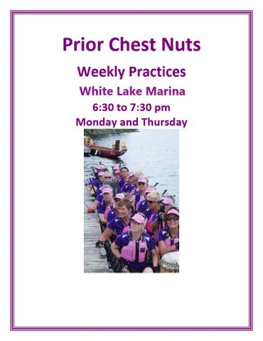 The Prior Chest Nuts are a group of dedicated breast cancer survivors who have come together to enjoy and promote the sport of dragon boat paddling. Twice a week we can be found at the White Lake Marina honing our paddling skills. The Chest Nuts also support and participate in local festivals and community events.